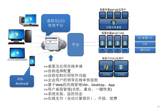 虚拟化应用管理产品核心是对虚拟化进行在线管理,构建一套基于虚拟化技术的云管里平台,适用于虚拟化的数据中心运营管理、个人用户在线管理云主机、企业用户管理云主机。建立基于流程化的虚拟管理平台...